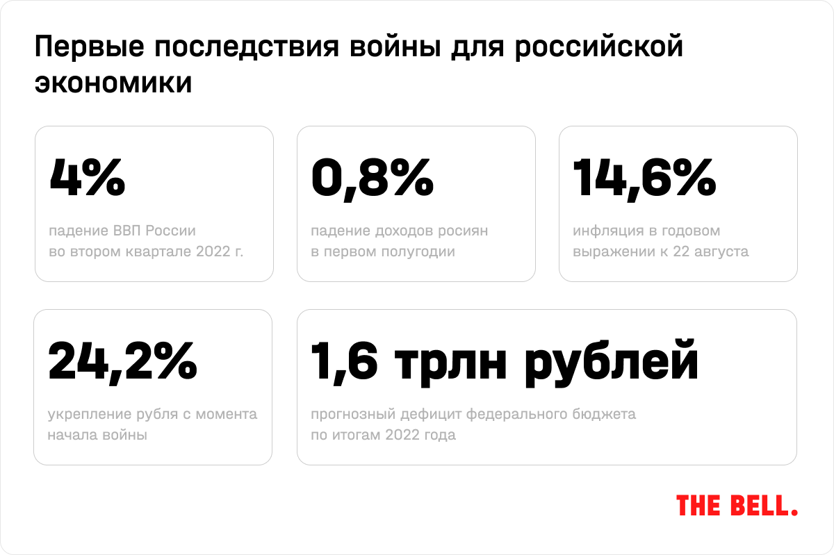 Западные страны ответили на вторжение в Украину беспрецедентными санкциями — помимо прочего, была заморожена почти половина международных резервов ЦБ на $300 млрд, Европа и США отказались от импорта российской нефти и угля, западные страны запретили экспорт в Россию высокотехнологичной продукции. Но пока российская экономика переносит санкции неожиданно не так плохо: спад ВВП по итогам года вряд ли значительно превысит 5%, инфляция в годовом выражении уже ниже 15%, а доходы населения за первое полугодие упали всего на 0,8%. Российский бюджет по итогам года окажется в дефиците, но пока страны Запада бесконечно далеки от главной цели санкций — лишения Кремля средств на продолжение боевых действий.