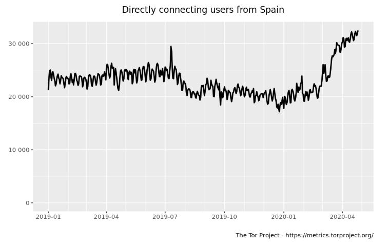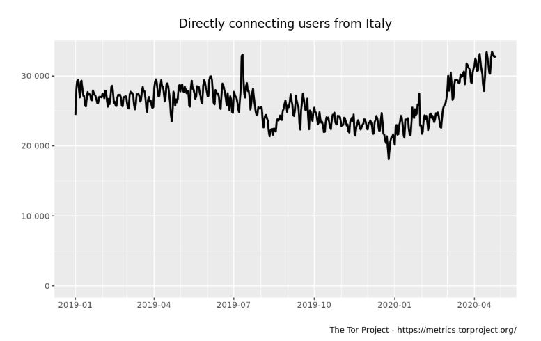 Например, в Италии и Испании аудитория увеличилась в полтора раза. В январе там было по 20–25 тысяч пользователей в день, следует из данных Tor Metrics, в апреле — около 40 тысяч.