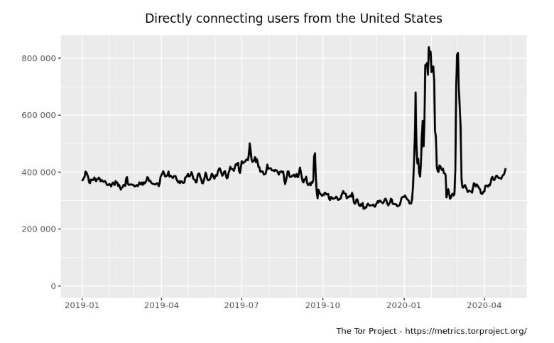 В США браузер Tor в 2019 году использовали около 400 тысяч пользователей в день. В конце года — около 300 тысяч. Во время локдауна аудитория начала расти. Пик наблюдался в марте: 800 тысяч пользователей в сутки. Сейчас число пользователей снижается.