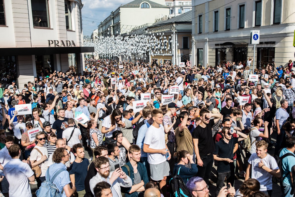 Московский митинг за честные выборы 27 июля стал крупнейшей несогласованной акцией последних лет — по крайней мере по числу задержанных, которое перевалило за тысячу. Протестующие не смогли прорваться к первоначальной цели — зданию мэрии, зато им удалось пройти маршем по всему центру Москвы и перекрыть Охотный Ряд и Садовое кольцо.
