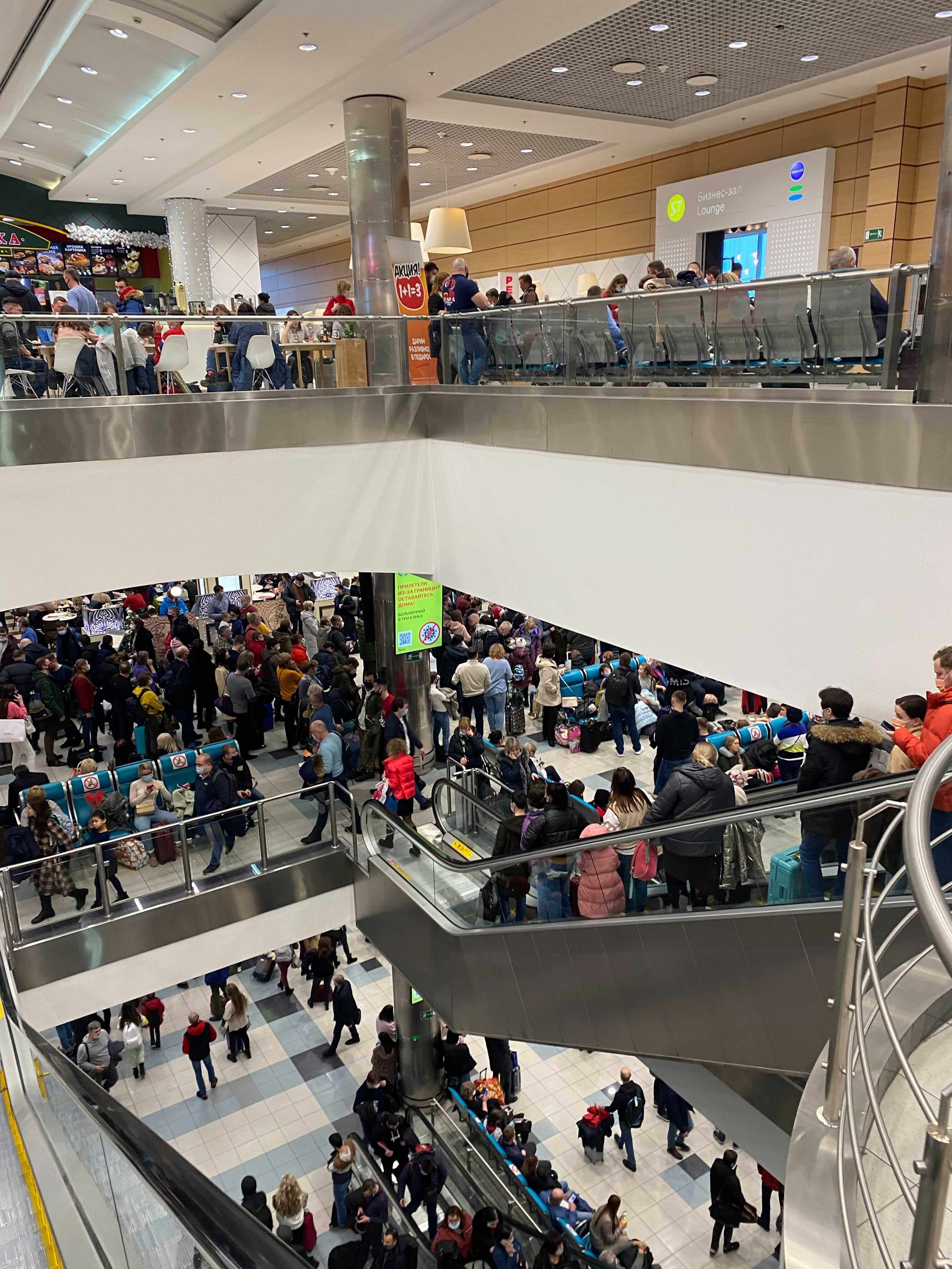 Более 150 самолетов не могут вылететь вовремя из московских аэропортов днем 31 декабря из-за непогоды. Хуже всего дела обстоят в Домодедово, где задерживаются более 90 рейсов. Как передает корреспондент The Bell, в аэропорту в ожидании вылета скопилось большое количество пассажиров.