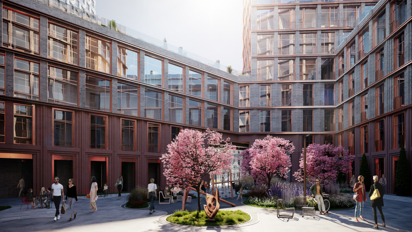 Кирпичный комплекс в стиле лофт отсылает к промышленной архитектуре XIX века, подчеркивая архитектурное единство сразу с двумя близлежащими арт-кластерами — «Арма» и «Винзавод», с которыми будет соединен общими пешеходными маршрутами. Здания переменной этажности (от четырех до одиннадцати этажей) объединены в единый ансамбль, внутри которого образован большой зеленый двор. За счет перепадов высоты практически изо всех квартир открываются панорамные виды на центр Москвы: Кремль, Сад им. Баумана, старую застройку Басманного района.