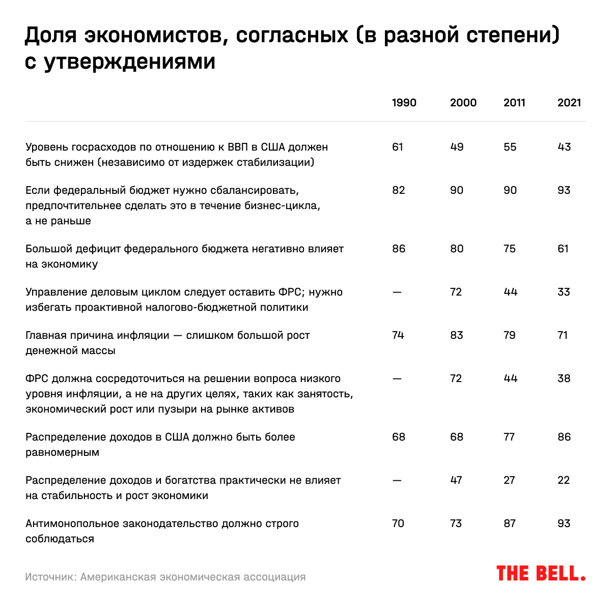 В начале января были опубликованы результаты опроса экономистов, входящих в Американскую экономическую ассоциацию, по поводу их позиции по важнейшим теоретическим и практическим экономическим вопросам.