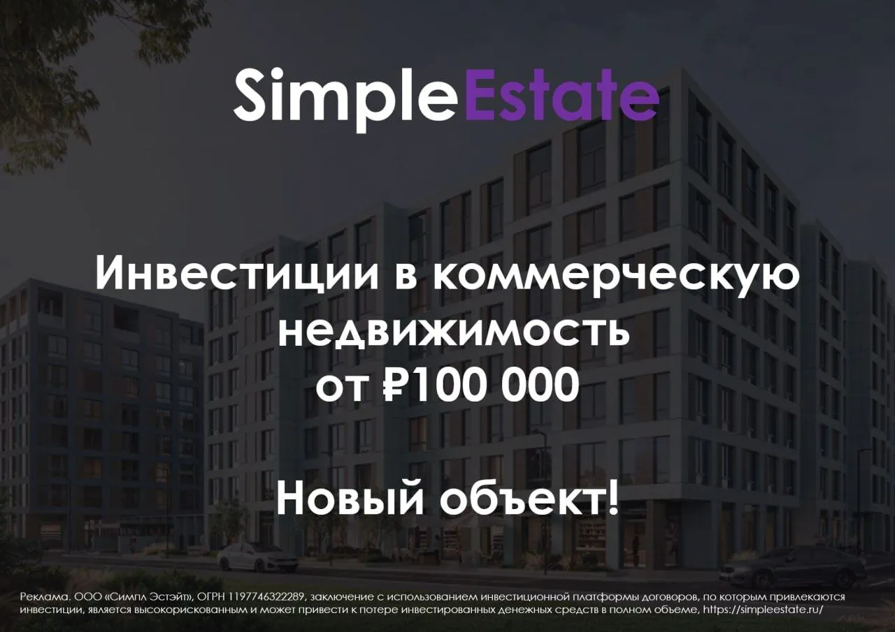 Сегодня, чтобы инвестировать в коммерческую недвижимость, не нужно иметь большой капитал. Вложить в профессионально подобранные объекты можно от ₽100 000 через инвестиционную платформу SimpleEstate.