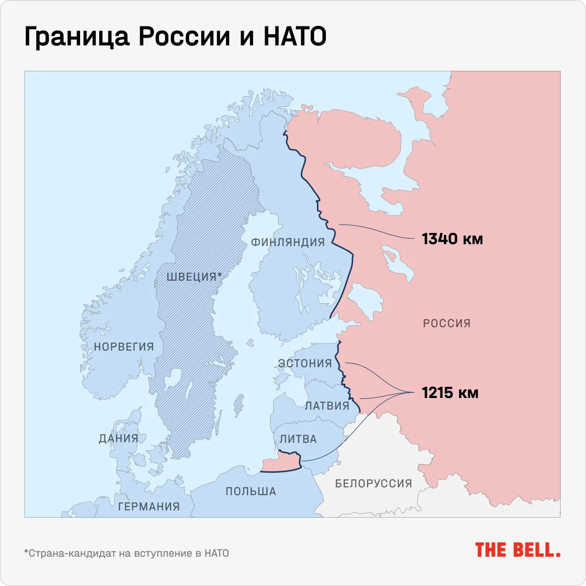 После вступления Финляндии в НАТО протяженность границы России с альянсом выросла примерно вдвое.
