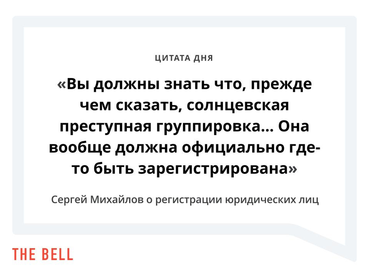 Сергей Михайлов провел пресс-конференцию, на которой заявил, что Солнцевская ОПГ, руководителем которой он считается, не существует. «В 90-х годах кто-то отстаивал свой бизнес, но всегда придерживались закона. Ведь в Библии сказано, по делам их узнаете их», — сказал Михайлов. Он подтвердил, что Владимир Путин в 2014 году наградил его часами (указ об этом ранее опубликовал Алексей Навальный) и заявил, что по-прежнему считает нарушением своих чести и достоинства расследование ФБК, в котором его назвали «криминальным авторитетом 1980-э и 1990-х» и «главой солнцевской ОПГ, более известным как Михась». «Я не жажду крови, пусть извинится — и все», – заявил Михайлов, отвечая на вопрос, чего он ждет от Навального. Ранее Люблинский суд отклонил его иск к политику и его фонду.