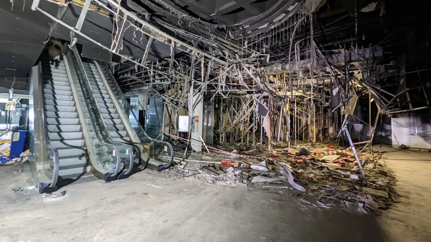 Поехал к другому ТЦ, уже не в центре. Там вокруг валяются горящие КАМАЗы, само здание продолжает гореть — апокалипсис. Вокруг ходят толпы людей. Я к одному подхожу, говорю: «Мне бы с администрацией поговорить». А он ко мне наклоняется и заговорщицким голосом: «Братан, какая администрация, беги отсюда».