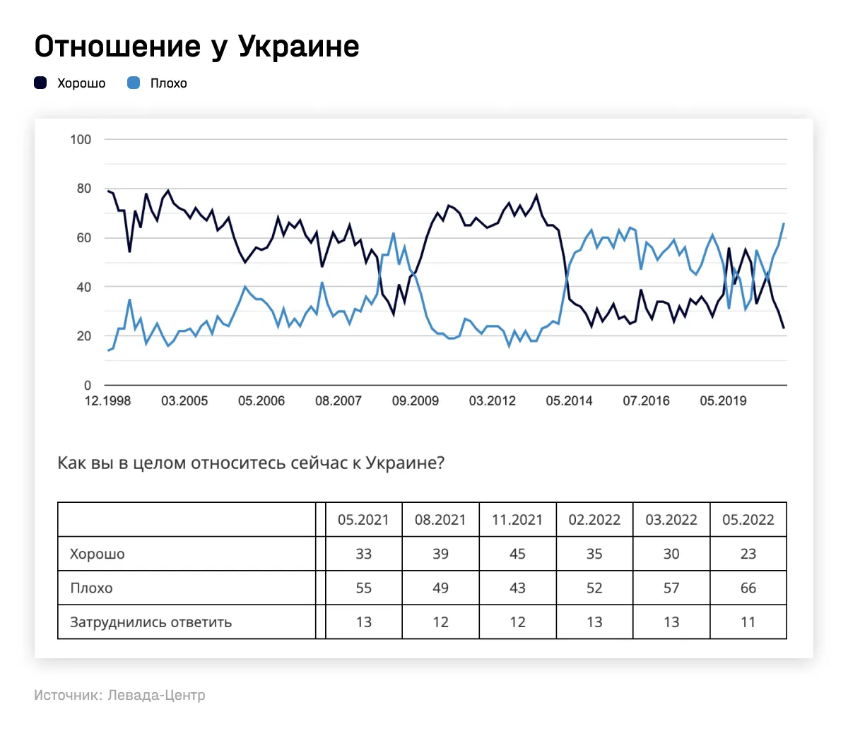 С другой стороны, вы фиксируете в опросах, что базовые потребности людей — это чтобы жизнь становилась лучше, чтобы решались социальные проблемы. И люди искренне не хотят платить за войну. Как все это сочетается в установках?