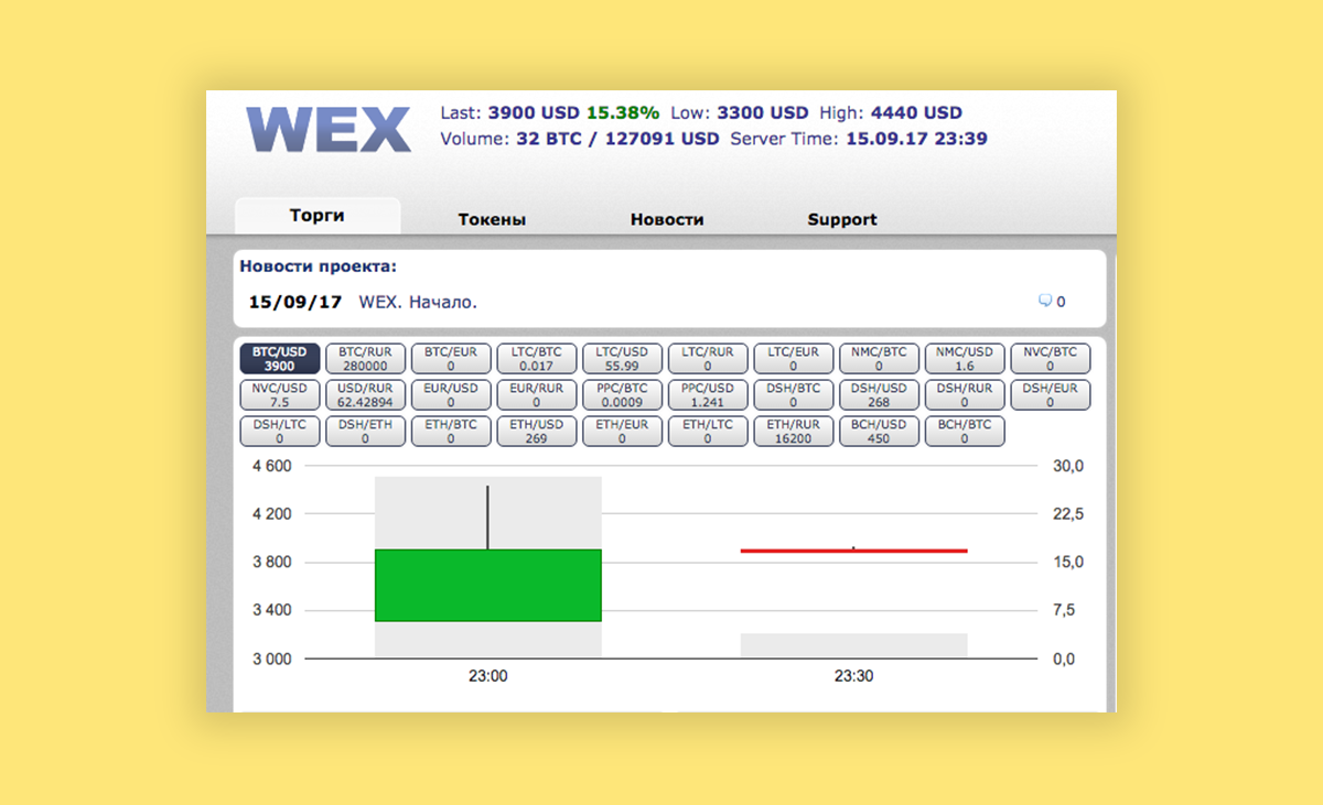 Криптобиржа Wеx — правопреемница печально известной BTC-e, которая появилась в 2011 году, а рухнула в 2017-м, после того как один из ее создателей — 40-летний россиянин Александр Винник — был арестован в Греции. По версии американского Минюста, через ВТС-е Винник отмыл от $4 до $9 млрд. Он занимался финансовыми делами биржи, а его партнер из Новосибирска, сисадмин Алексей Билюченко под ником admin, отвечал за техническую часть. BTC-e быстро стала популярной — в основном благодаря тому, что для участия в торгах пользователям не нужно было проходить никакой верификации, что очень устраивало кибермошенников всех мастей.