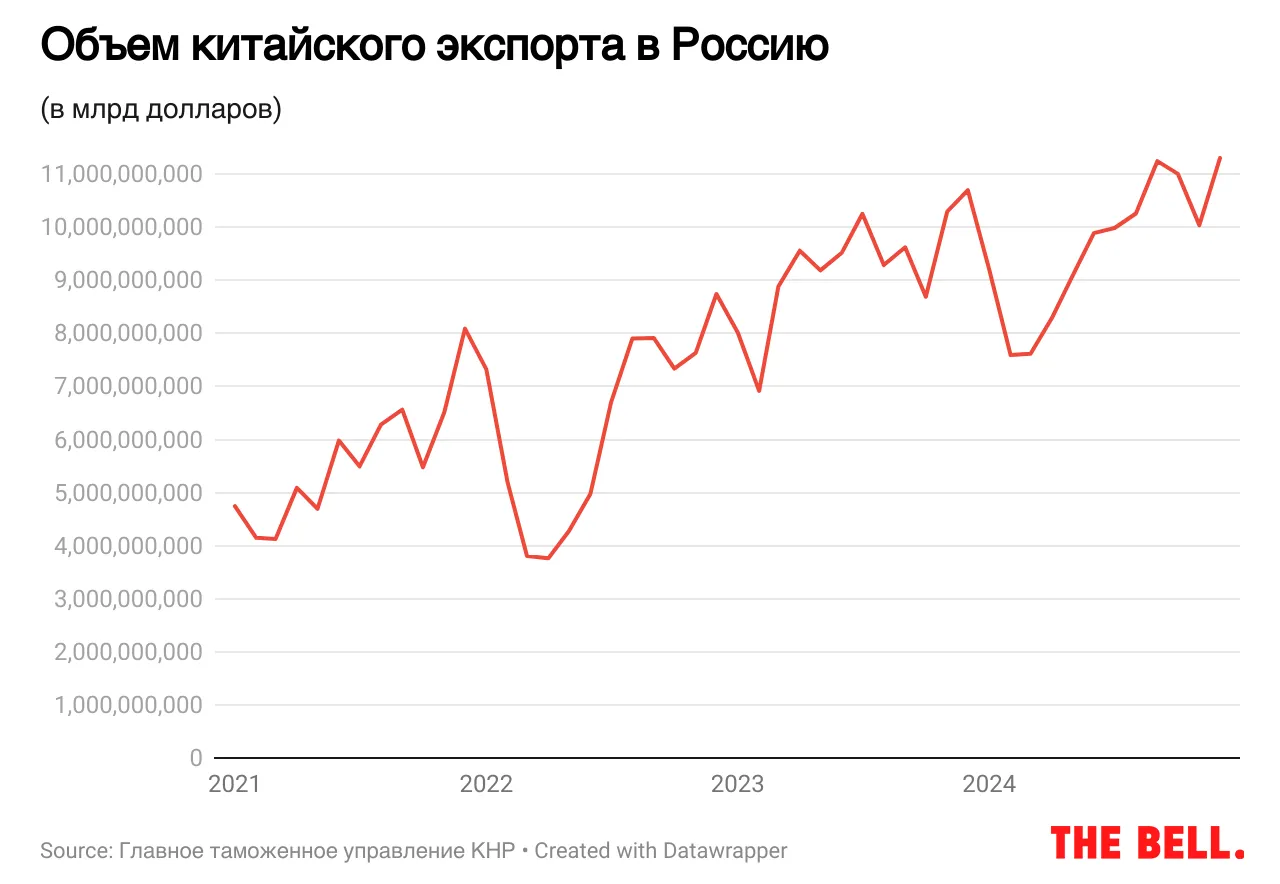 Китайский экспорт в Россию по итогам 2024 года побил рекорды. Не помешали даже проблема с платежами и угрозы санкций