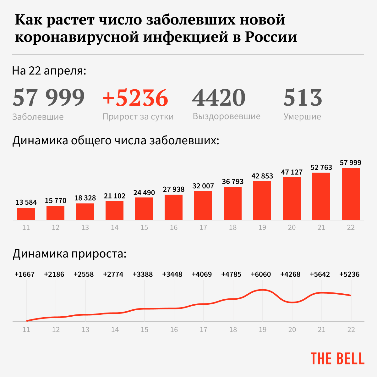 • Заразились: 57 999, новых случаев инфекции — 5236.