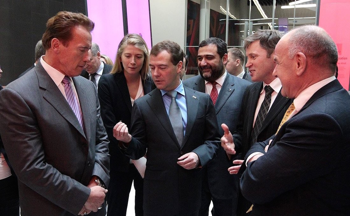 2010-й год. Медведев и губернатор Калифорнии Арнольд Шварценеггер обсуждают возможности развития Сколково. Фото: kremlin.ru