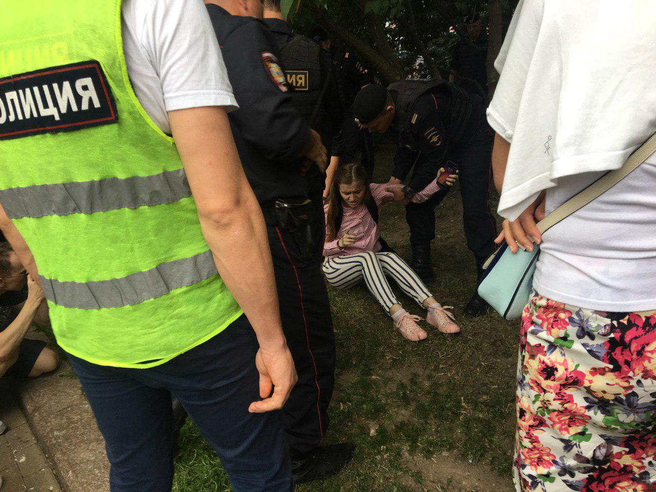 Начинаются задержания. Корреспондент «Дождя» Мария Борзунова сообщает, что полицейские охотятся за людьми в футболках «Я Иван Голунов». Пока задержаны 5-6 человек. «ОВД-Инфо» сообщает уже о девяти задержанных. Среди них журналисты Илья Жегулев и Андрей Перцев.
