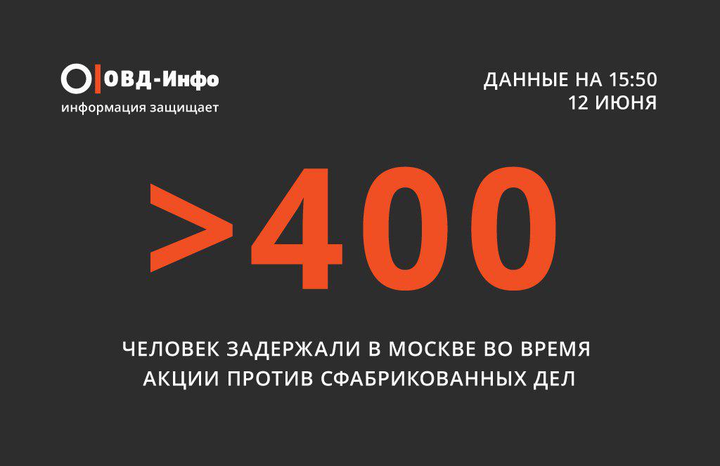 ОВД-Инфо: последние данные на 15:40 — задержаны более 400 человек.