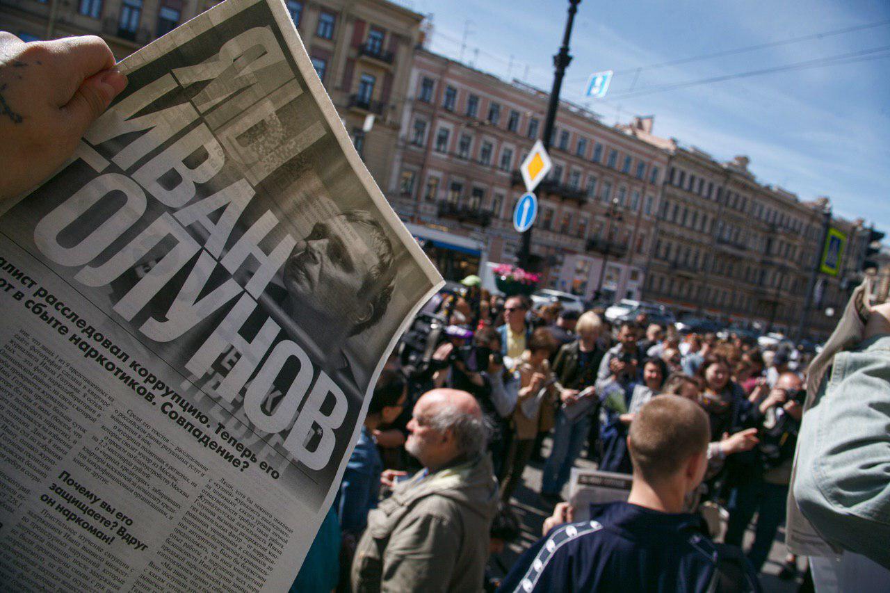 В Петербурге тоже сегодня прошла акция в поддержу Ивана Голунова, передает корреспондент The Bell. Она началась в 12:00 у станции метро «Площадь Восстания» на Невском проспекте. Ее организовало сообщество петербургских журналистов «Медиафан», в ней приняли участие несколько сотен человек. Полиция дежурила на месте с 11:00, но проведению акции не мешала, обошлось без задержаний.