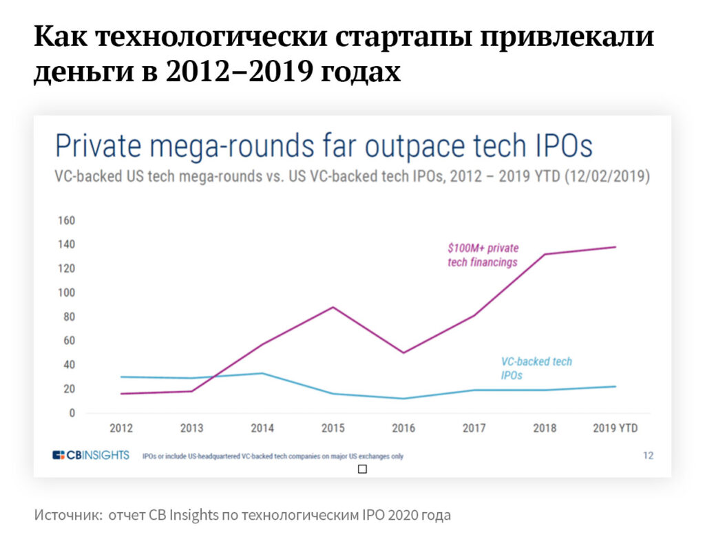 Насколько бодро 2019 год начинался, настолько уныло он закончился. Проблемы WeWork и еще ряда проектов заставили многие частные технологические компании отложить IPO. Скорее всего, только во второй половине 2020 года мы увидим оживление этого рынка. Соответственно, активнее будут действовать стратегические покупатели.