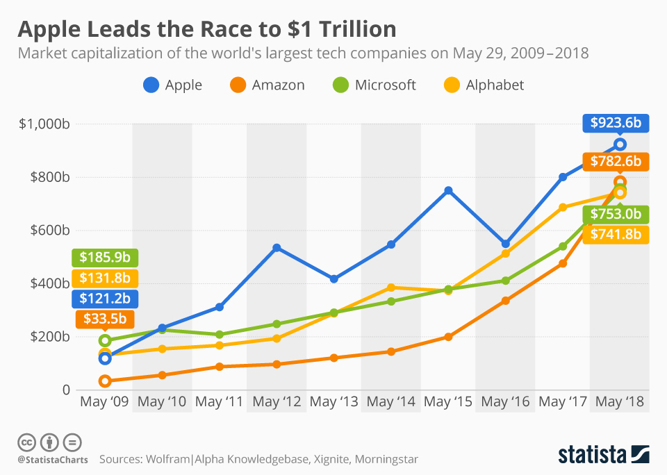 - Alphabet впервые обошла Microsoft по капитализации в 2012 году, и с того момента компании уже не один раз меняли свои позиции. В последний раз Microsoft уступил конкуренту в 2015 году.