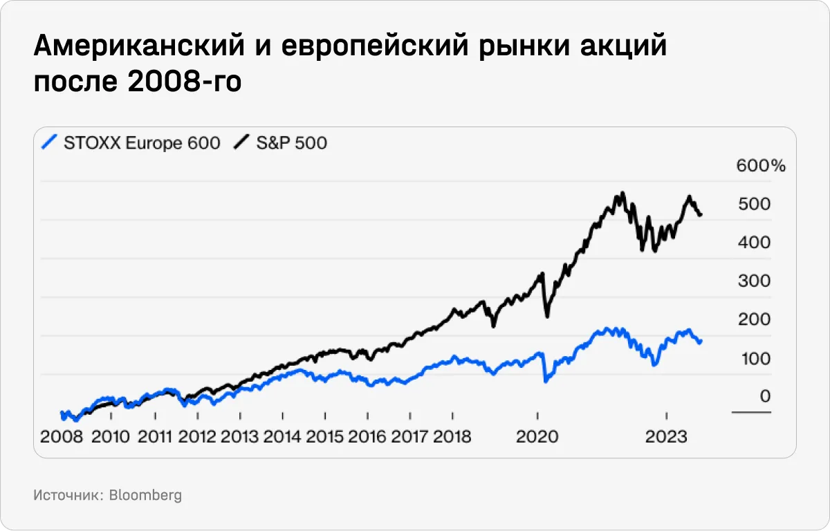 Многие инвесторы обходят вниманием европейские компании. И понятно почему: за последние 15 лет европейский Stoxx 600 вырос лишь на 35%, в то время как американский S&P 500 увеличился более чем в три раза. В США торгуются крупнейшие технологические компании мира, в то время как Европа считается инвесторами фрагментированным рынком с устаревшей экономикой, которой нечего предложить, кроме промышленных компаний и банков, отмечал FT.