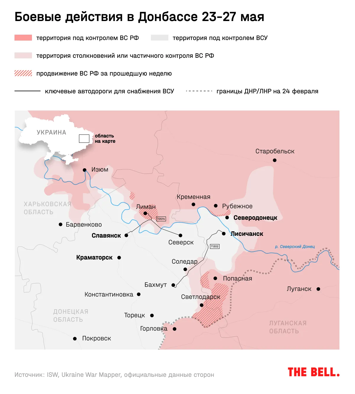 - В пятницу войска РФ и ДНР заняли стратегически важный город Лиман — последний украинский плацдарм на северной стороне Северского Донца. Этот пункт позволяет контролировать одну из автодорог, по которой снабжается группировка ВСУ в Лисичанске.