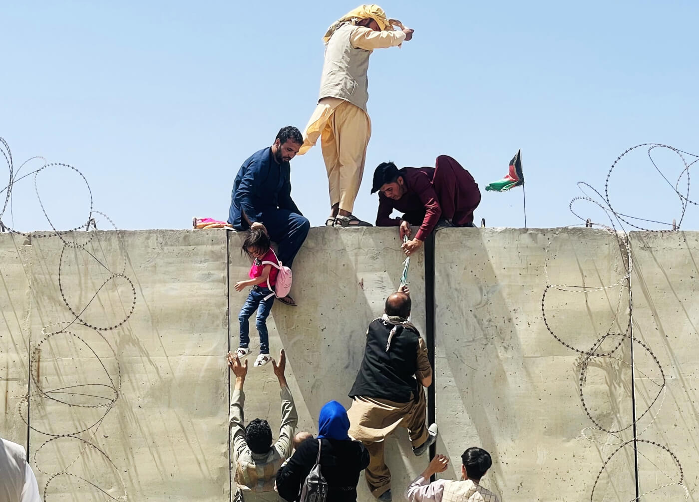 Почти все страны региона закрыли свои сухопутные границы для беженцев из Афганистана. Не стал закрывать границу Иран, согласившись принимать беженцев. Также канцлер Германии Ангела Меркель заявила, что Берлину придется эвакуировать из Афганистана около 10 тысяч человек. На фото: люди перелезают через стены с колючей проволокой, чтобы попасть на территорию аэропорта.