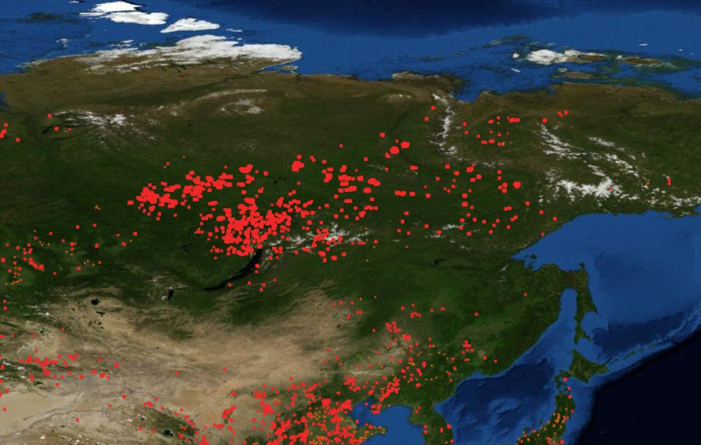 29 июля режим ЧС из-за лесных пожаров введен на территории трех российских регионов: Красноярского края (14% территории России), Иркутской области (4,5%) и частично Бурятии.