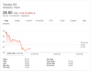 - Новость стала вторым за неделю серьезным ударом по «Яндексу». После того как на прошлой неделе стало известно, что государственный Сбербанк ведет переговоры о покупке крупного пакета акций «Яндекса», российский поисковик терял на NASDAQ до $3 млрд капитализации. После того как в понедельник, 22 октября, сооснователь и руководитель группы компаний «Яндекс» Аркадий Волож заявил, что не намерен продавать свою долю в компании, акции немного отросли.