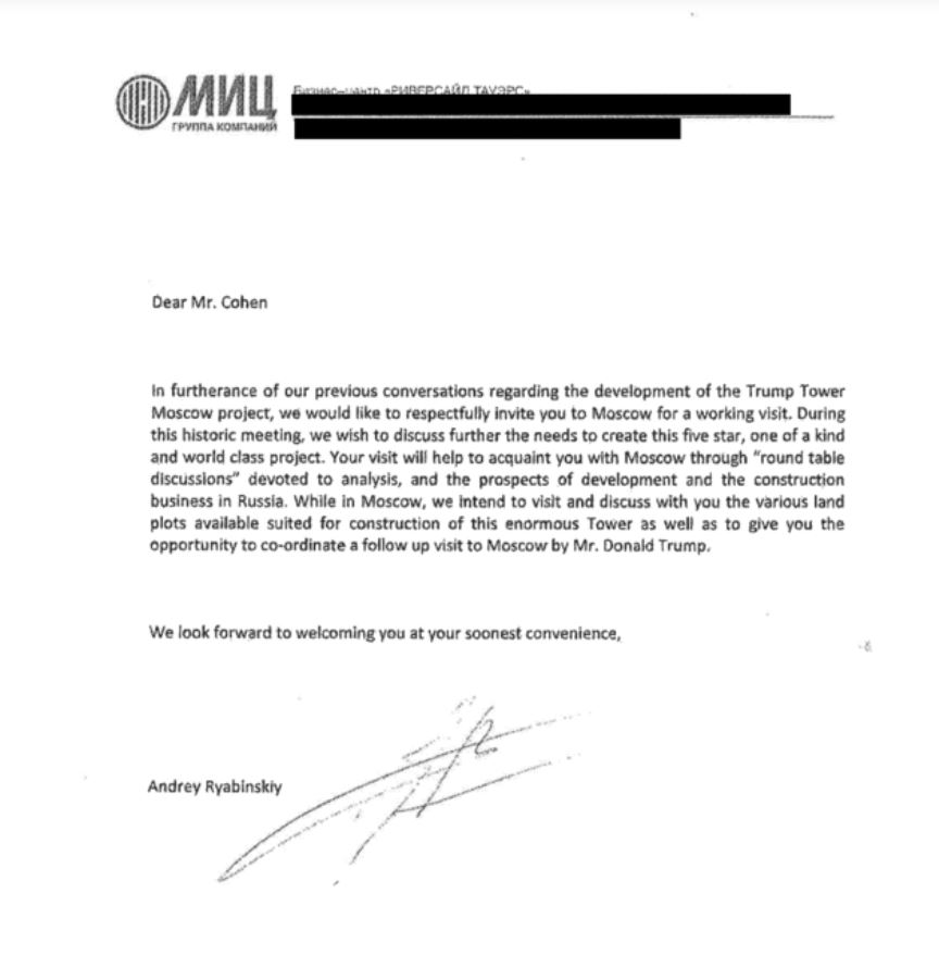 Больше года назад The Washington Post со ссылкой на два источника, знакомых с материалами следствия Мюллера, сообщила, что предложение о девелоперском проекте от Сергея Гордеева Коэн в конце 2015 года получил через грузинского бизнесмена Георги Рцхаладзе. Представитель Рцхаладзе это подтверждал. Гордеев тогда говорил The Bell, что не знает ни Трампа, ни Рцхаладзе и ни с какими проектами к The Trump Organization не обращался.
