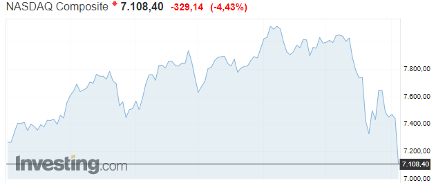 Обвал в США: индекс NASDAQ показал сильнейшее падение с 2011 года