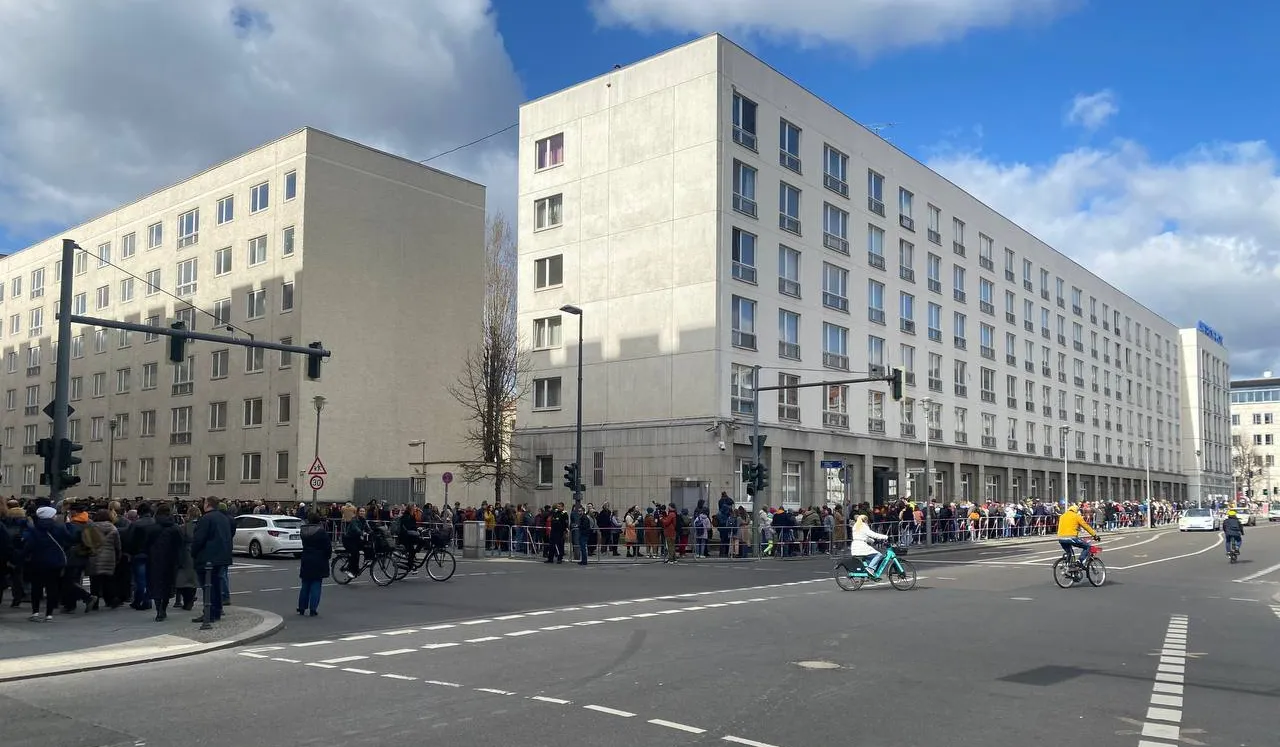 В Берлине прошла одна из самых массовых акций «Полдень против Путина». В очереди к российскому посольству выстроились не меньше 2 000 человек. Ее протяженность составила почти 1 километр. В акции приняли участие в том числе Юлия Навальная, Михаил Ходорковский и Екатерина Шульман.