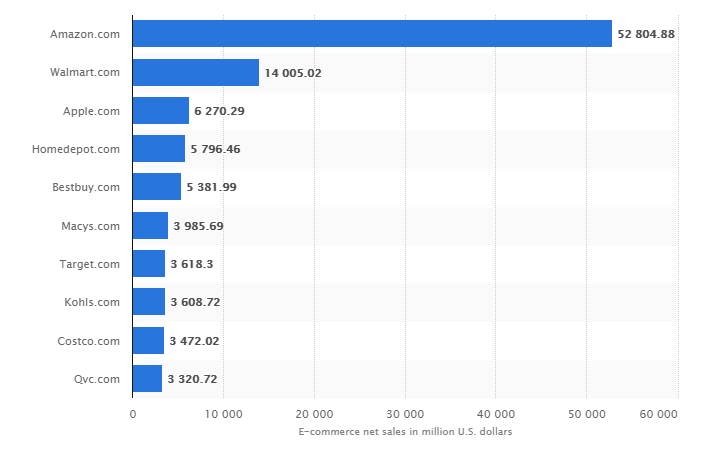 Самые популярные онлайн-ритейлеры в США по интернет-продажам, 2017 год.