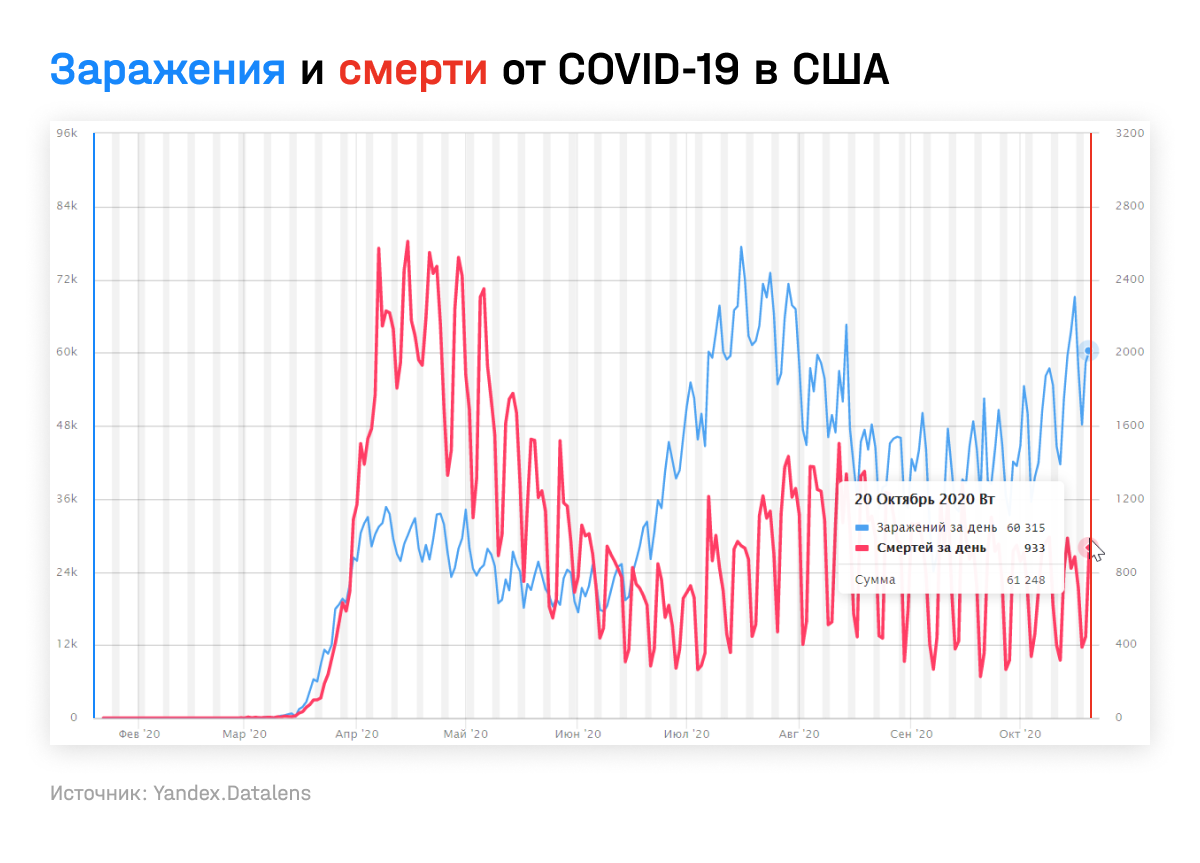 — А вот тут Трампа стоит похвалить, потому что принятый в конце марта пакет мер был и достаточным по объему, и своевременным. При обычном президенте-республиканце не было бы вливания денег в экономику в таком масштабе, что средние доходы американцев выросли. Это отчасти иллюзорная вещь, потому что деньги взяты в долг, пусть и под очень низкий процент, и их придется отдавать. Но мера тем не менее была правильной с точки зрения не только экономического, но и пандемического эффекта. Есть исследования, согласно которым чем больше у людей денег, тем лучше они соблюдают социальную дистанцию, что легко объяснимо: им не приходится активно ходить на работу. Правда, сопровождать принятие правильных мер Twitter-призывами «освободить Мичиган» от коронавирусных ограничений — все равно что стрелять себе в ногу.