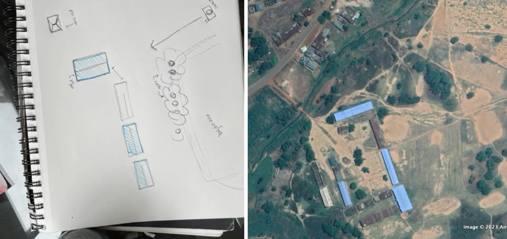 Вот лишь несколько примеров работы со спутниковыми снимками. Эксперты CIR обратили внимание на видео в твиттере с братской могилой в Виноградном, куда российские военные, по сведениям очевидцев, свозили тела погибших в Мариуполе. Из кадров этого видео специалисты CIR составили панорамный снимок, сделали репортерский набросок этого места и, действительно, нашли его в Виноградном с помощью Google Earth Pro. Кадры, на которых определяются захоронения, появляются начиная с апреля 2022 года. После площадь братской могилы только увеличивается.