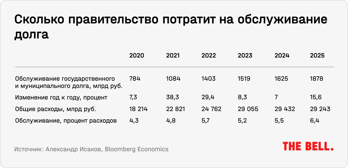 - Во-первых, от ставки ЦБ зависят расходы правительства на обслуживание долга — главный ограничитель «правительственной эмиссии». Четыре пятых российского внутреннего госдолга (примерно 15 трлн рублей) — обязательства по плавающим ставкам, так или иначе привязанным к ставке ЦБ (ОФЗ с плавающим купоном, льготная ипотека и льготные корпоративные кредиты по разным госпрограммам). Это делает каждый следующий цикл повышения ставок все более дорогим.