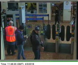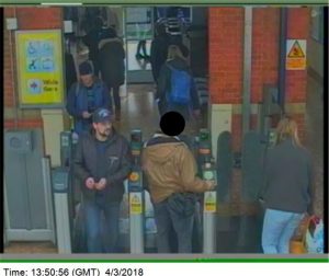 • Третье изображение (время: 16.11, суббота, 3 марта) показывает подозреваемых на железнодорожном вокзале Солсбери, откуда они отправляются обратно в Лондон.