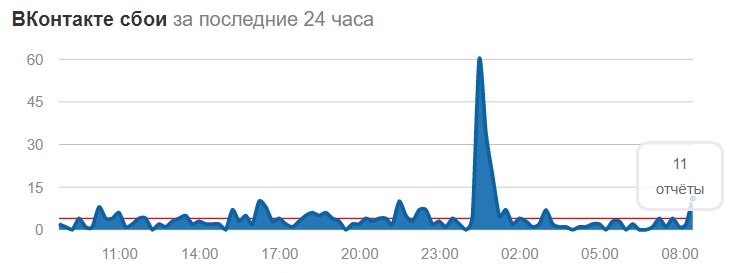 - Собирающий жалобы пользователей сайт Downdetector зафиксировал увеличение числа сбоев в работе «ВКонтакте» и Facebook около полуночи.