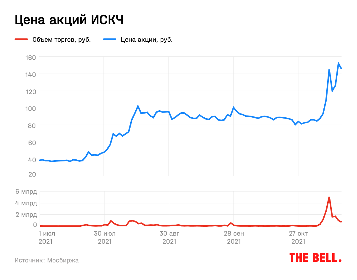 После взлета стоимость акций ИСКЧ немного скорректировалась, а в начале ноября бумаги снова резко подорожали: тогда в YouTube-канале «РынкиДеньгиВласть» появилось еще одно интервью с Исаевым, а в телеграм-канале — около двух десятков постов с описанием того, насколько перспективна компания.