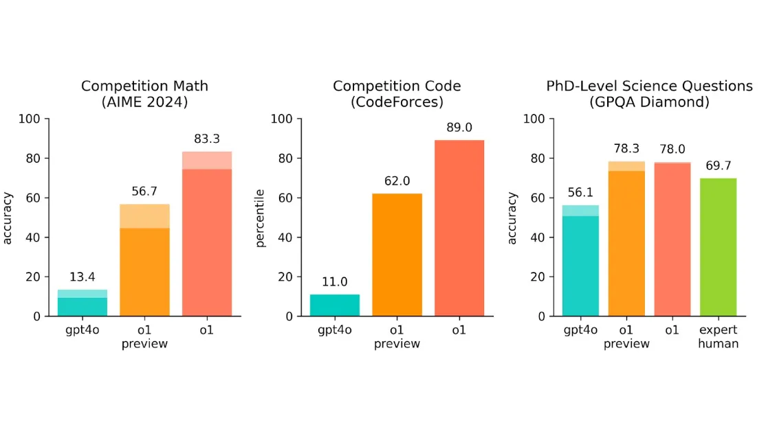 Важно оговориться, что эти результаты не означают, что o1 в принципе более способна, чем доктора наук — только то, что модель более ловко решает некоторый тип задач, которые, как ожидается, должны быть по силам людям со степенью PhD.