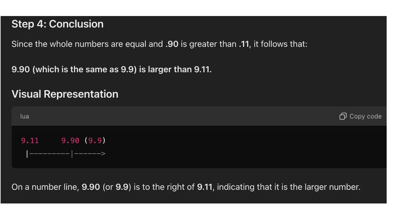 У нас пока нет хорошего и точного ответа, почему так происходит в конкретном примере. Самые популярные гипотезы — это что модель воспринимает 9.11 как дату, которая идет после девятого сентября; или что она видела слишком много кода, и видит в цифрах версии программ, где зачастую одиннадцатая версия выходит позже, чем девятая. Если добавлять в условие, что речь идет о числах, или что нужно сравнить числа, то модель ошибается реже.