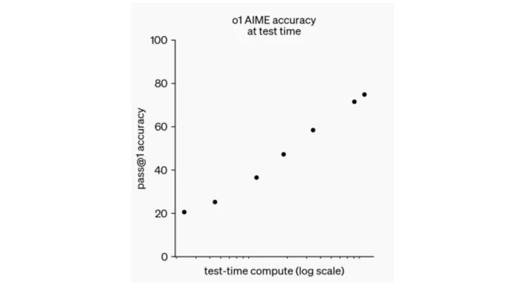 Мы начали рассуждения об о1 с того, что осознали проблему: на каждое слово при генерации тратится одинаковое количество мощностей. Некоторые задачи просты и им этого хватает, другие очень сложны и нужно время «на подумать». Полезно было бы понимать, насколько сильно качество вырастает с удлинением цепочки рассуждений. OpenAI хвастается вот таким графиком: