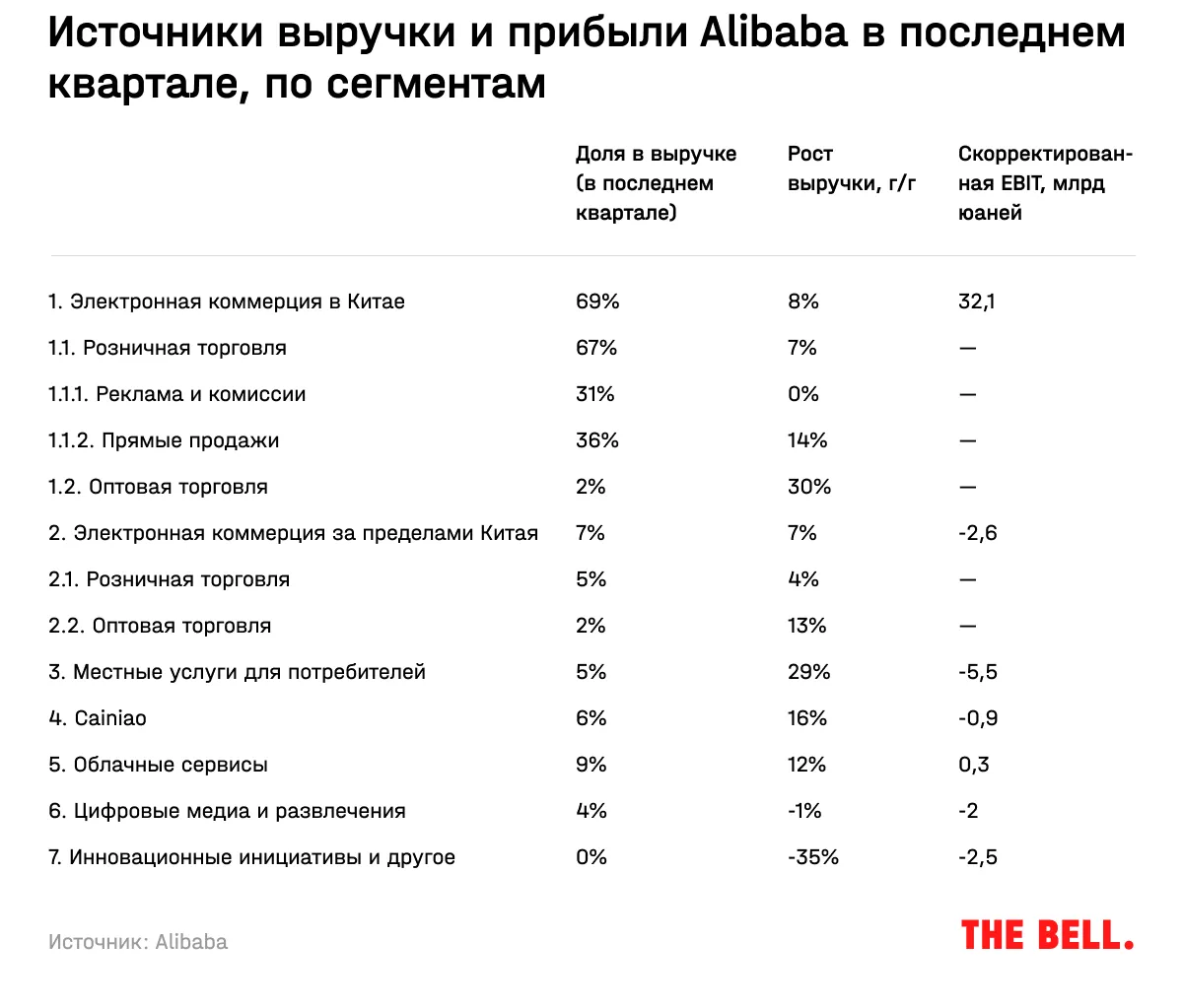 Также компания развивает в Китае сегмент b2b через платформы 1688 и Lingshoutong, но они приносят всего 2% общей выручки.