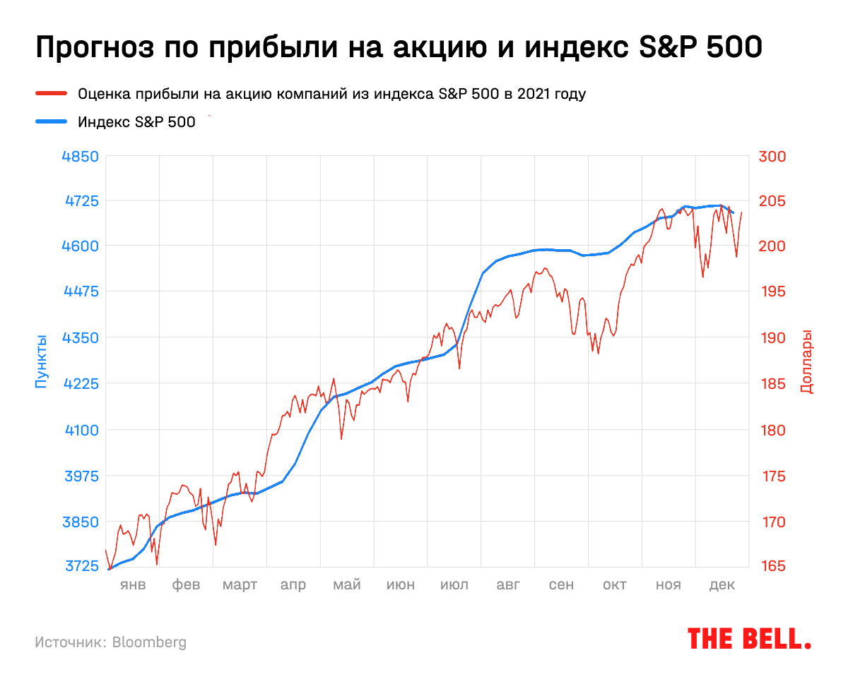 Рост корпоративных прибылей, который был одним из драйверов рынка в 2021 году, замедлится и, вполне возможно, окажется ниже ожиданий аналитиков. В то же время акции техов и других компаний, которые выигрывают от введения ограничительных мер, будут расти, как это было на новостях о дельта-штамме. Концентрация общей рыночной капитализации в акциях бигтехов вырастет еще больше.