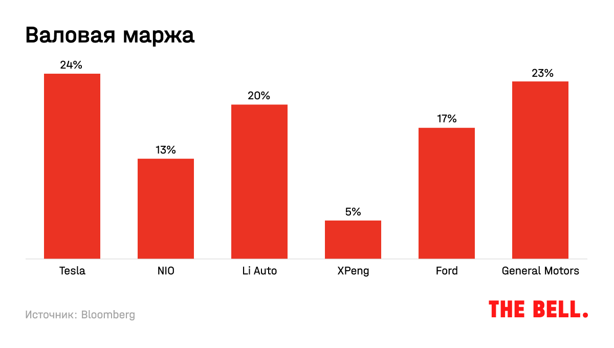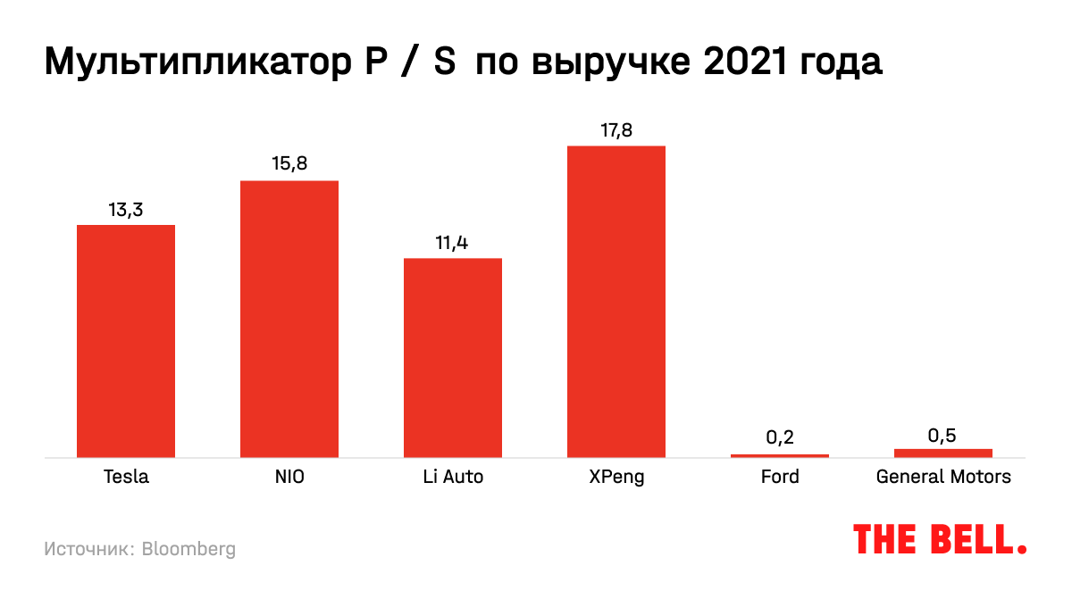Традиционные автопроизводители ожидаемо стоят намного дешевле, чем производители электромобилей. Например, капитализация Ford почти такая же, как и у XPeng, но традиционный производитель при этом генерирует прибыль и сильный денежный поток, а XPeng — нет.