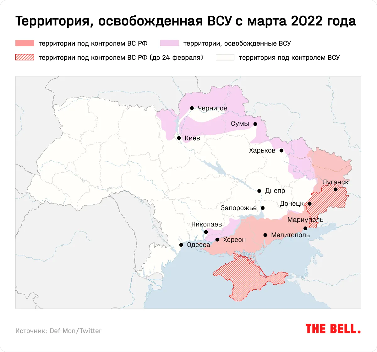 Российская армия, освободив Херсон, упростила себе задачу обороны остальных территорий, укрывшись на левом берегу за труднопреодолимой водной преградой Днепра и в очередной раз сократив территорию, которую надо оборонять. Но на этом выгоды вынужденного отступления заканчиваются. С учетом освобожденного херсонского правобережья Россия уже утратила почти половину украинских территорий, закхваченных после 24 февраля.