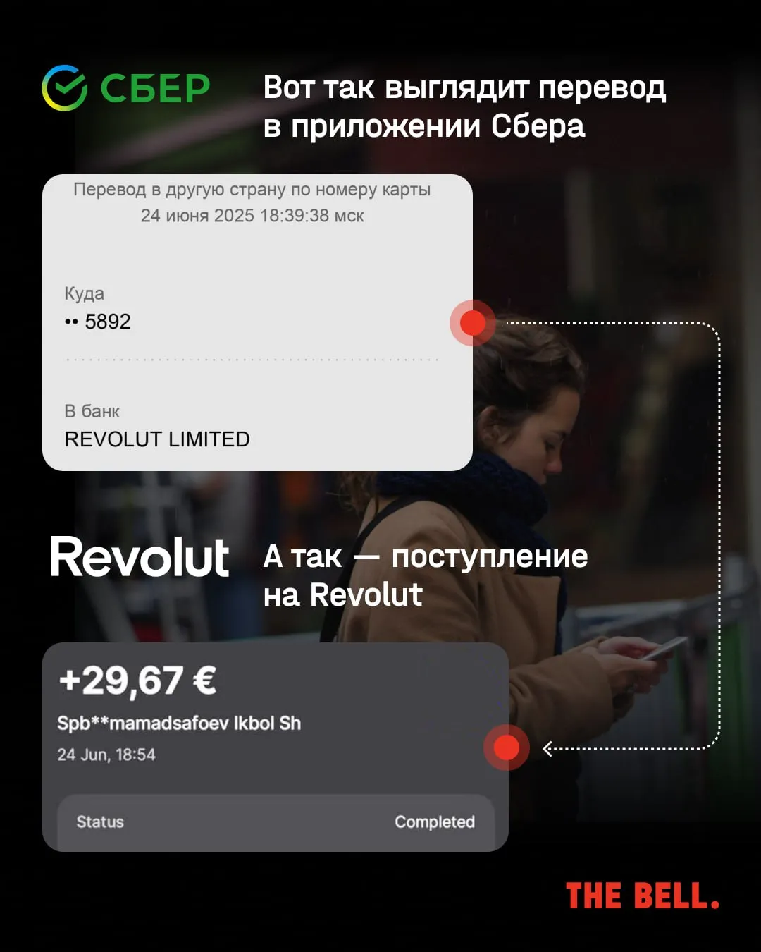 Как выяснил The Bell, Сбербанк позволяет отправить рубли с конвертацией в евро на счета как минимум двух европейских необанков: британо-литовского Revolut и немецкого N26. Мы отправили два перевода на разные карты: комиссия при переводе 3000 рублей составила 30 рублей, операция прошла по курсу чуть более 100 рублей за евро (официальный курс ЦБ — 91 рубль). Еще один клиент Сбербанка, с которым поговорил The Bell, также успешно отправил деньги на счета в Revolut и N26. В середине июня о таких переводах в своем телеграм-канале написал журналист Никита Могутин.