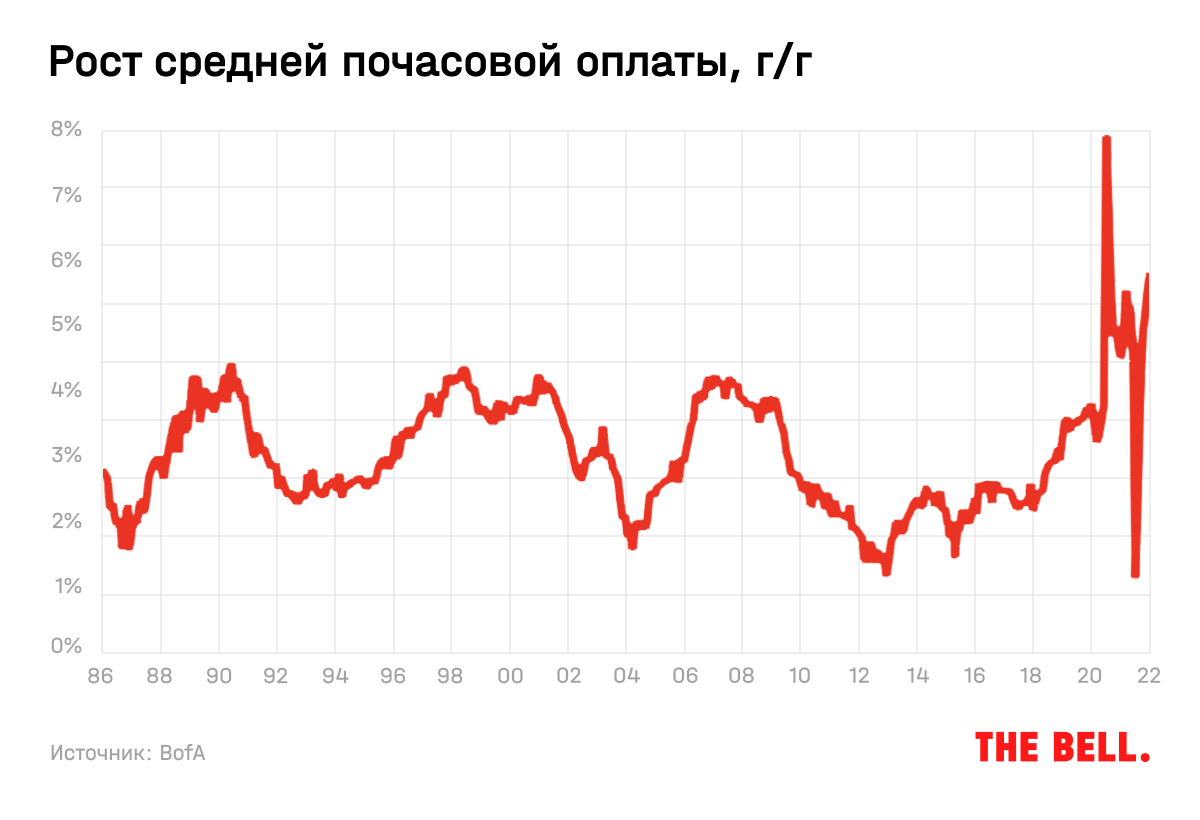 В сентябре рекордное число американцев — 4,4 млн, или 3% всей рабочей силы, — ушли со своих работ. В октябре этот показатель снизился до 4,2 млн, а всего в апреле—сентябре это сделали больше 28 млн человек. Что бы ни было причиной, это будет негативно сказываться на инфляции и расходах компаний в ближайшее время.