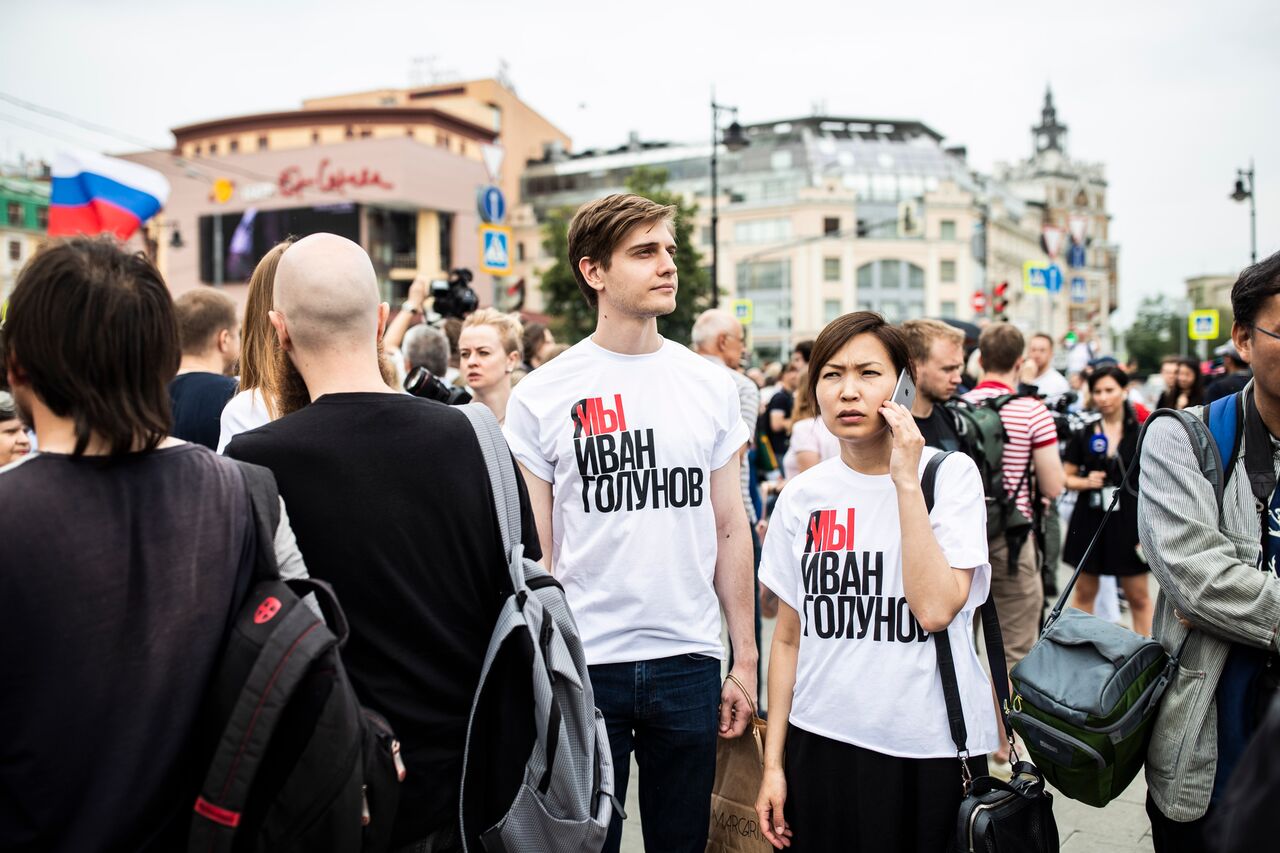 Первыми в поле зрения полиции попадали люди в футболках «Я/Мы Иван Голунов». Для того чтобы оказаться в автозаке, необязательно было вести себя агрессивно, скандировать лозунги или мешать проезду машин.