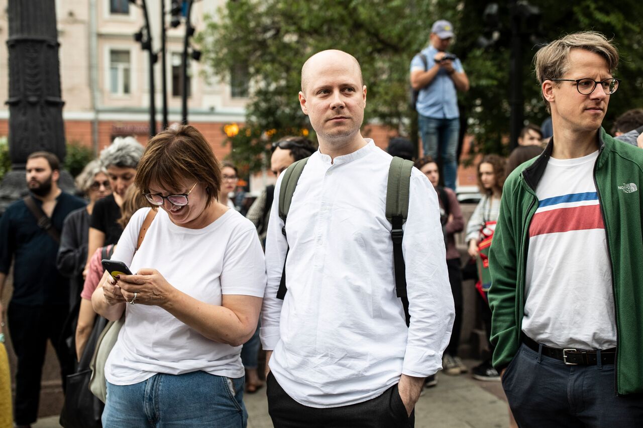 Журналиста Евгения Берга, который был одним из инициаторов акции, задержали прямо во время телефонного разговора с заместителем мэра Москвы по вопросам региональной безопасности Александром Горбенко. Берг пытался выяснить, почему на мирной акции задерживают «простых людей без плакатов, без всего».