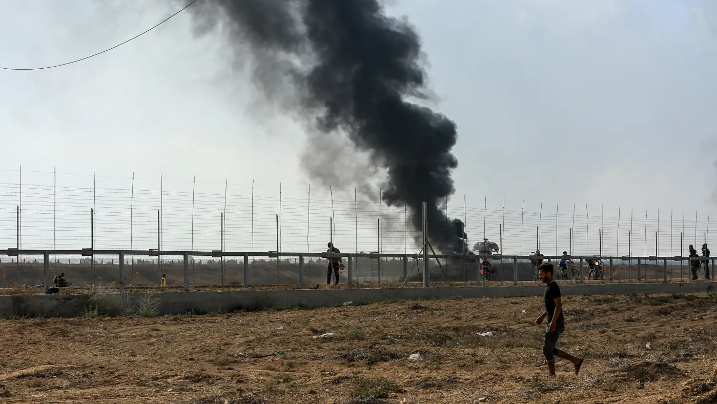 Дым на границе Израиля с сектором Газа, 7 октября. Палестинские боевики в субботу атаковали приграничные подразделения Армии обороны Израиля.