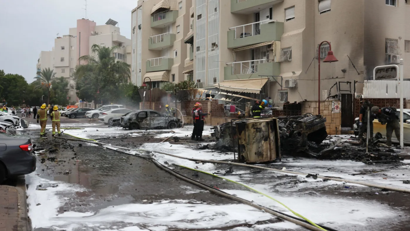 Сгоревшие автомобили после прямого попадания в жилой дом в Ашкелоне, 7 октября.