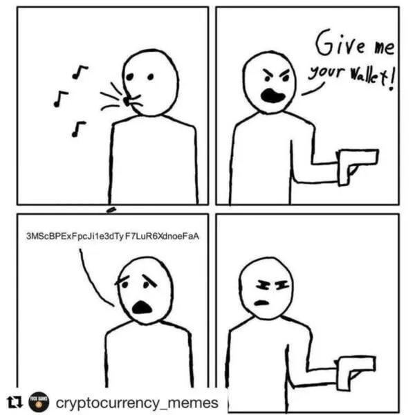 Хитрый криптан здесь, вероятно, диктует публичный адрес кошелька — более прошаренный в технической стороне вопроса гопник потребует в ответ на это назвать сид-фразу